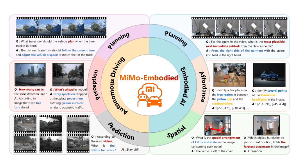 By deeply integrating vision and language, MiMo-Embodied can process images, videos, and text, enabling multimodal tasks such as visual question answering (VQA), instruction following, and scene description.