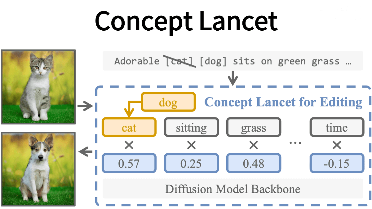 Concept Lancet (CoLan) is a plug-and-play, zero-shot image editing framework developed by a research team at the University of Pennsylvania. Concept Lancet is based on sparse decomposition of images in the latent space, representing an image as a linear combination of visual concepts. It enables precise concept transplantation according to editing tasks such as replacing, adding, or removing concepts.