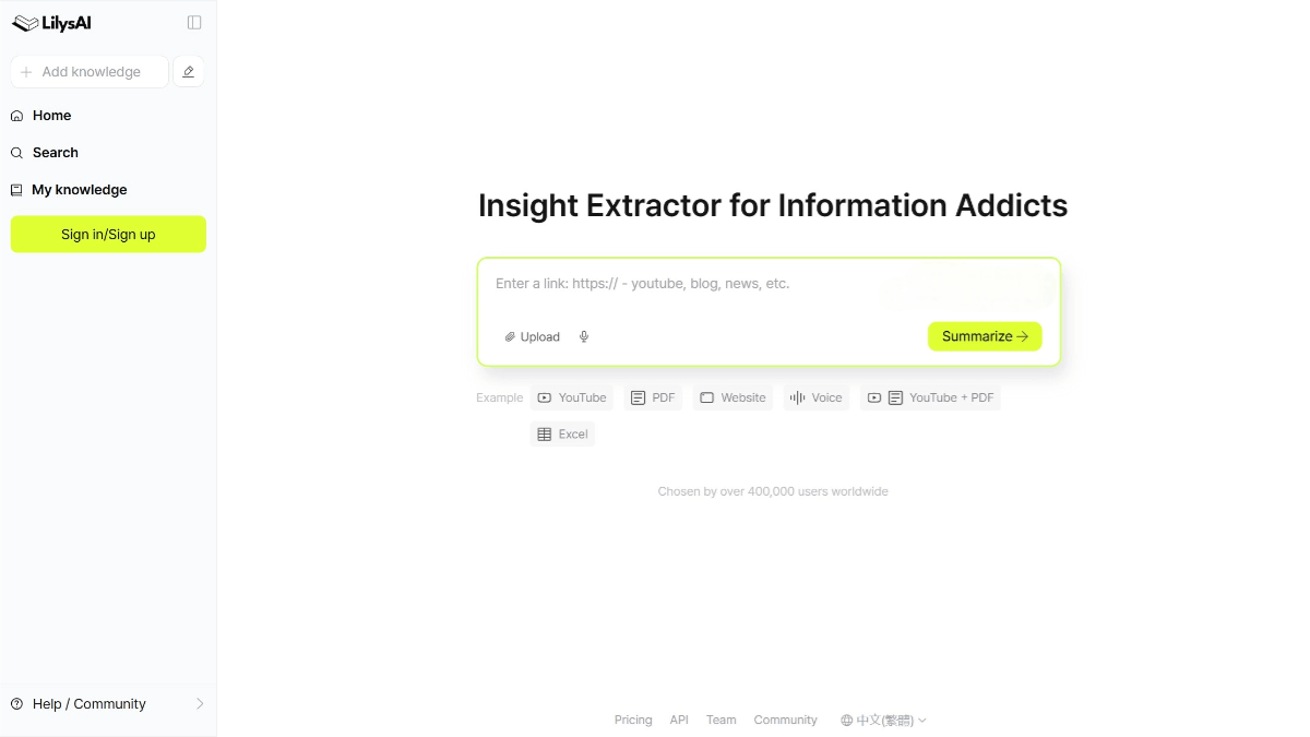 LilysAI – An AI summarization tool that supports multiple file types, including audio, video, PDFs, and webpages