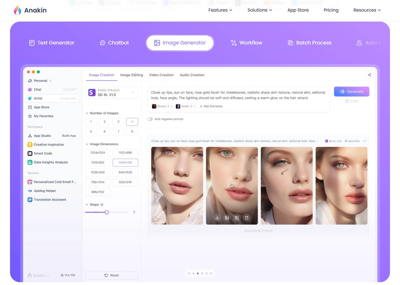 Anakin is a one-stop no-code AI application building platform. Users can quickly create their own AI applications in just one minute, including content creation, copywriting, Q&A, image generation, video generation, voice generation, intelligent agents, automated workflows, custom AI applications, etc., enabling even users without programming or technical backgrounds to leverage AI technology to enhance work efficiency and creativity.