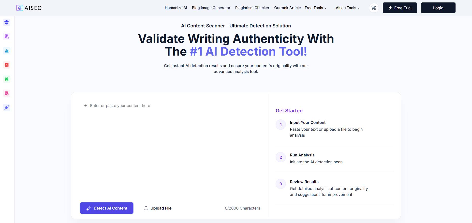 AISEO AI Content Detector is an AI content detector launched by AISEO, an artificial intelligence SEO article tool. It analyzes the patterns and structures in text through advanced algorithms to identify whether the content is generated by machines or humans. It can quickly detect AI-generated content and help article creators maintain the quality and authenticity of their content.
